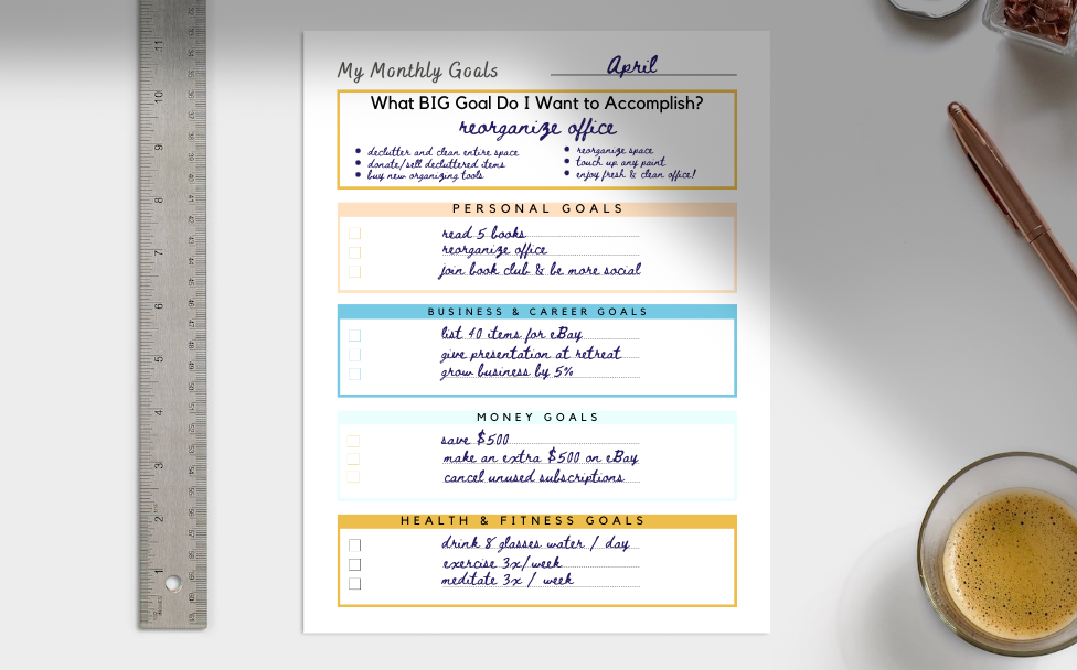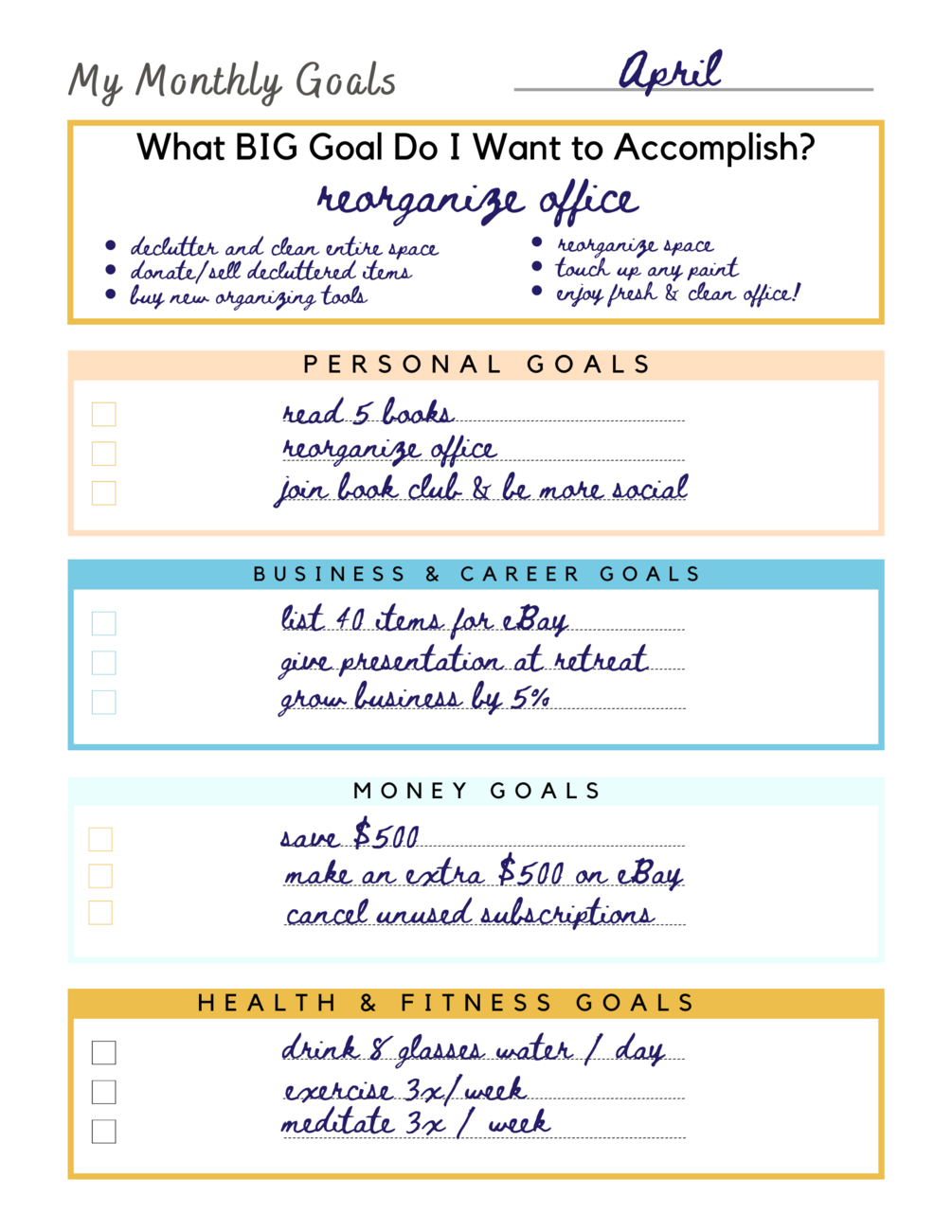 - Start by thinking about your BIG Goal for the month. What is one thing you really want to accomplish?
